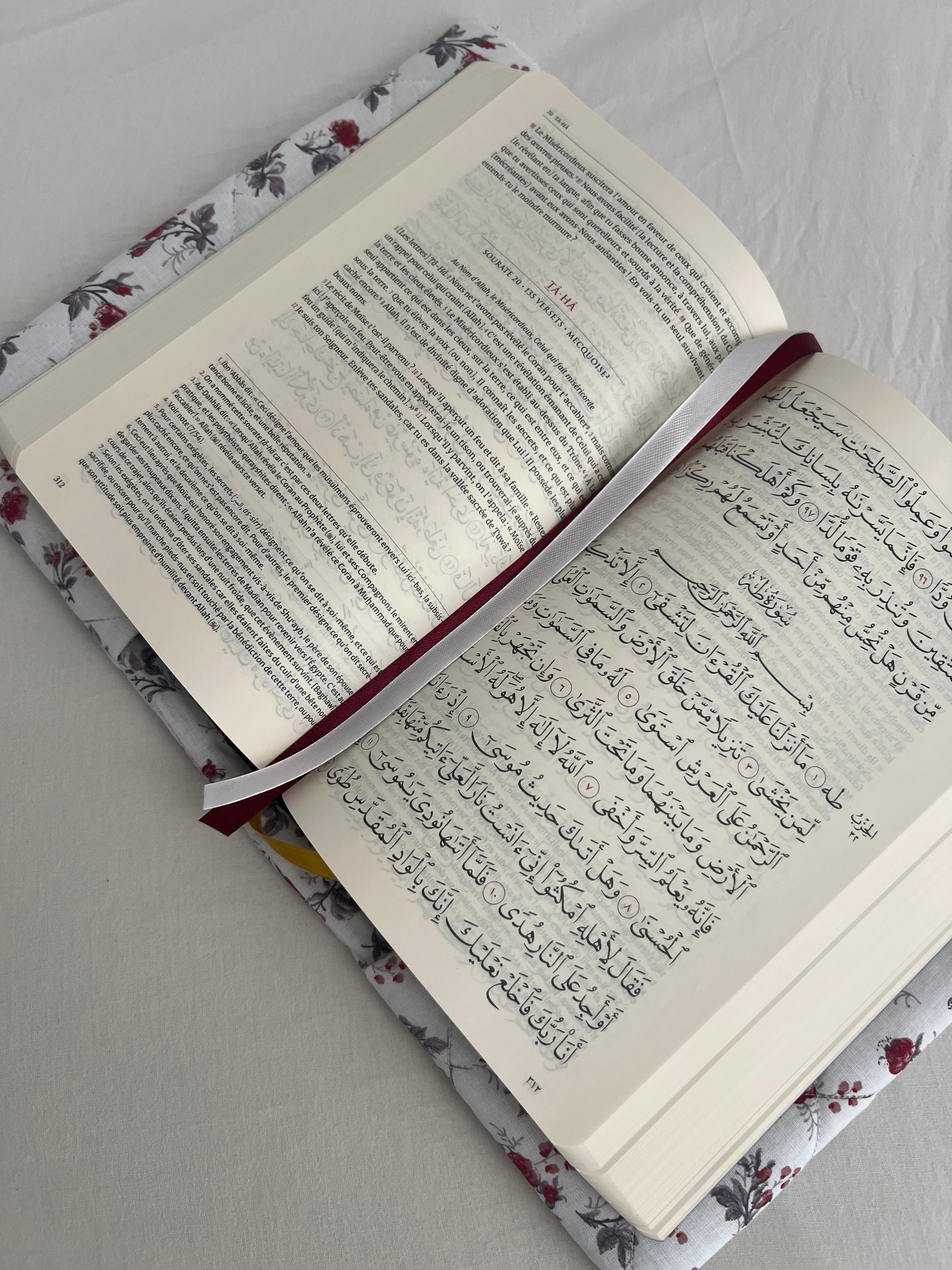 Et pour que ce protège Coran soit le plus utilisé possible, je t’offre les marques pages rubans de ton choix. Ainsi, tu pourras te rappeler de tes pages de lecture, mémorisation, méditation et sourarates spéciales que tu aimes relire souvent (Al-Kahf, Al-Mulk…). Laisses-moi une note dans ton panier afin que je puisse intégrer les marques pages directement dans la couture de ton protège Coran (uniquement sur les articles non déjà cousus).